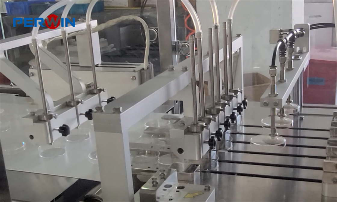 Το μηχάνημα γεμίσματος δοχείου Petri είναι μια αυτόματη συσκευή που έχει σχεδιαστεί για την πλήρωση δοχείων Petri με ακριβή όγκο υγρού.Είναι εξοπλισμένη με μια ολοκληρωμένη μονάδα servo βύθισης και στοίβωσης που επιτρέπει την αποτελεσματική στοίβαση πιάτωνΤο μηχάνημα αυτό είναι ικανό να γεμίζει όγκους που κυμαίνονται από 4 ml έως 70 ml και μπορεί να ρυθμιστεί σε χρόνο ψύξης 3 έως 5 λεπτών.που επιτρέπουν τη συσκευασία 10 τεμαχίων σε μια στοίβαΟι πελάτες μπορούν επίσης να ορίσουν τον αριθμό των στρωμάτων στοίβασης ανεξάρτητα.